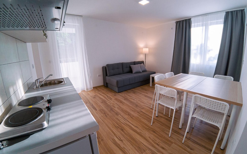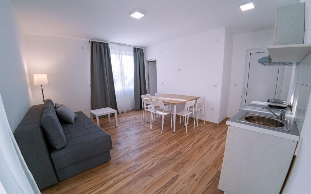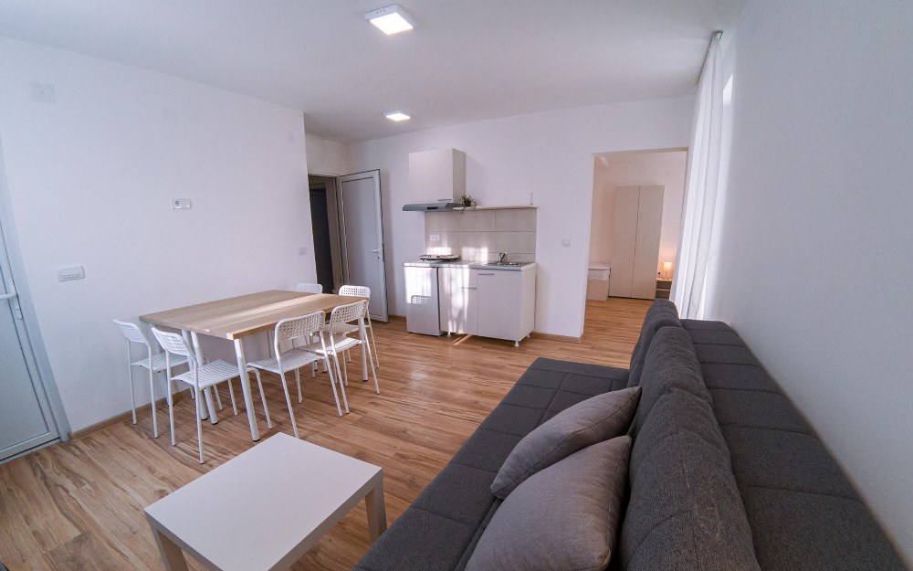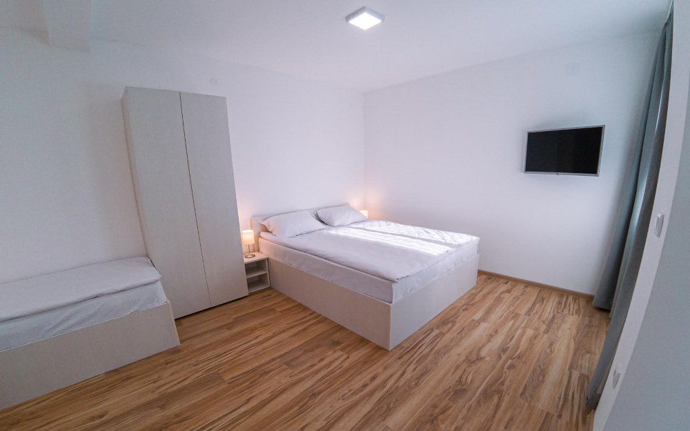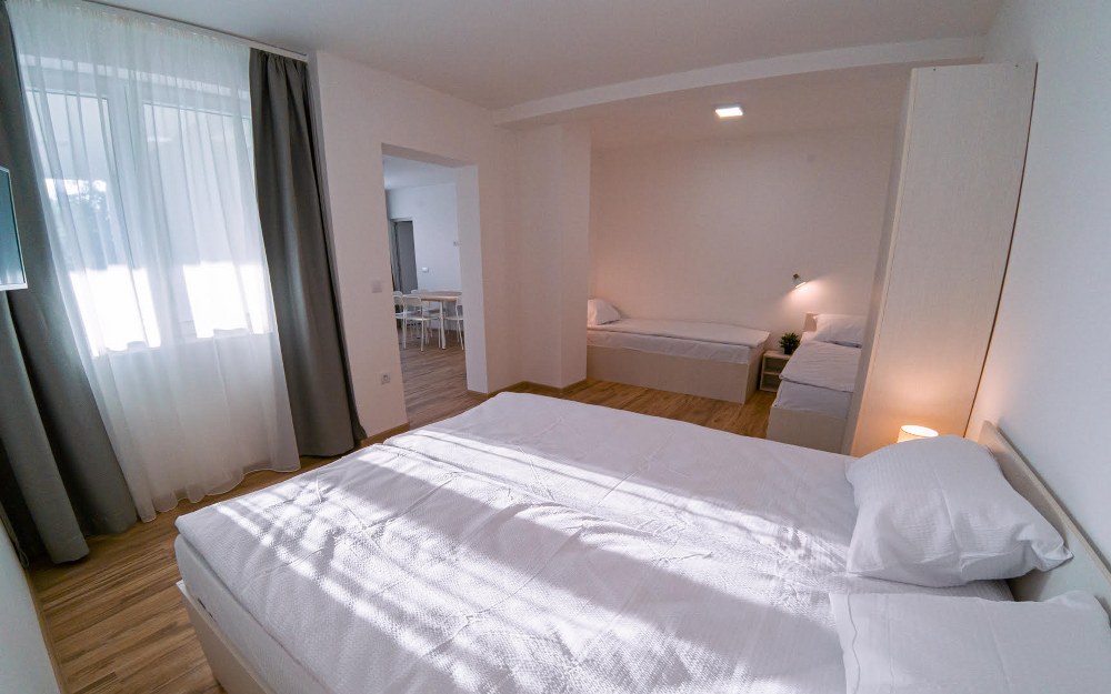 Obuhvata: Raspolaže sa jednim francuskim, dva singl i jednim ležajem tipa Grof za smeštaj do šest osoba. Ima sopstveno kupatilo, čajnu kuhinju sa aspiratorom i frižiderom, sto i stolice, noćne ormariće, garderober, TV , Wi-Fi internet i ima sopstvenu terasu površine 13m2.